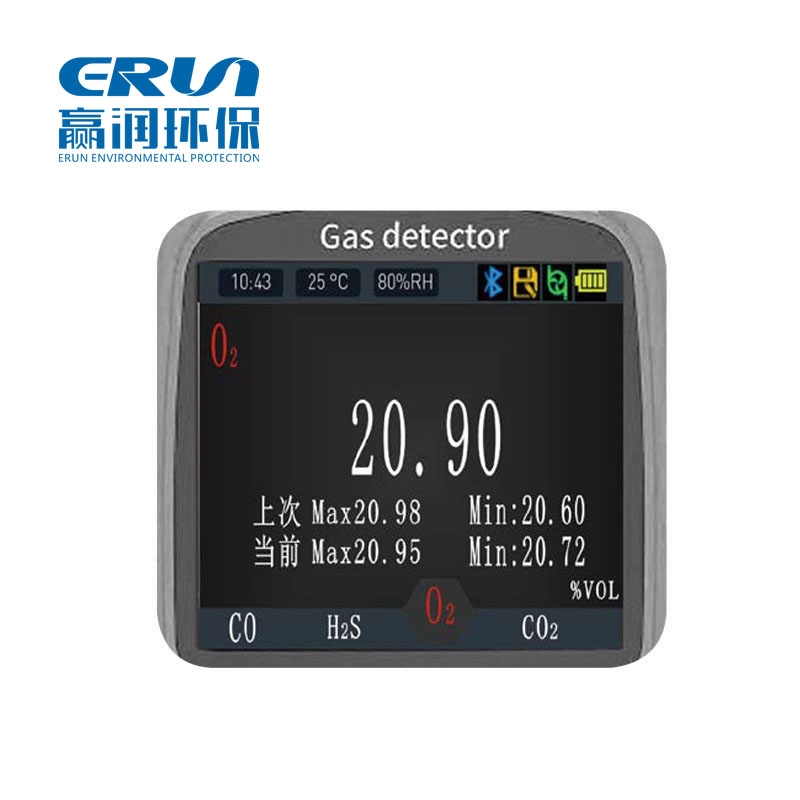 2.31寸高清彩屏,顯示實(shí)時(shí)濃度、報(bào)警、時(shí)間、溫度、濕度、存儲(chǔ)、通信、電量、充電狀態(tài)、濃度單位、